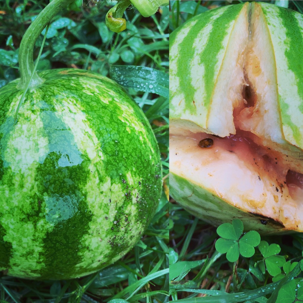 The day wasn’t a complete wash. We had a nice harvest of tomatoes and peppers. Green tomatoes were picked to save them from splitting like our sweet little melon.