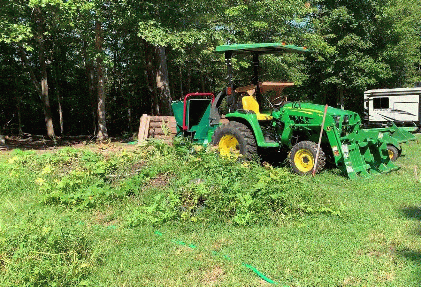 Several months ago, Dick built two hugelkulture mounds. Digger dug a large trench, and Tractor filled it with decaying logs and branches, topped with forest soil, and compost. In the first year, the mound’s nitrogen will be bound to the decomposing process of the wood, turning them into sponges that soak in water. In two years or so, perennials will thrive in this micro-climate without the need to water.